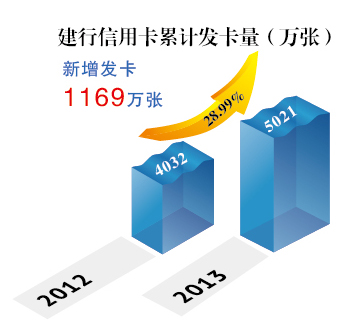 报告中还显示,2013年,建行银行卡手续费收入257.83亿元,增幅为28.04%。其中,信用卡收入增速近50%,主要是抓住个人客户消费升级和支付方式变化的机遇,积极拓展优质客户及推出多项创新产品所致;借记卡、ATM收单收入也保持双位数增长。