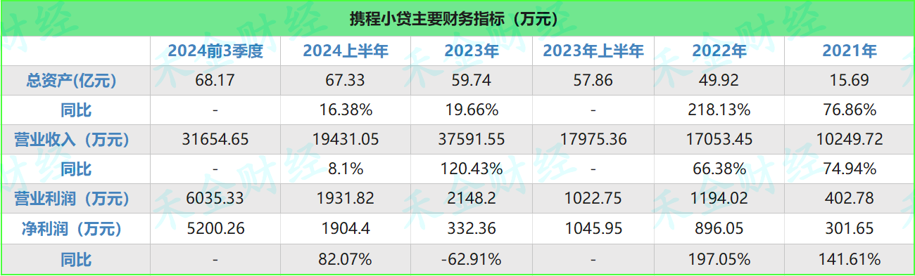作者了解到,2024年前三季度,携程小贷实现营业收入3.17亿元,营业利润6035.33万元,净利润为5200.26万元。对比2023年全年332.36万元净利润,超15倍以上。