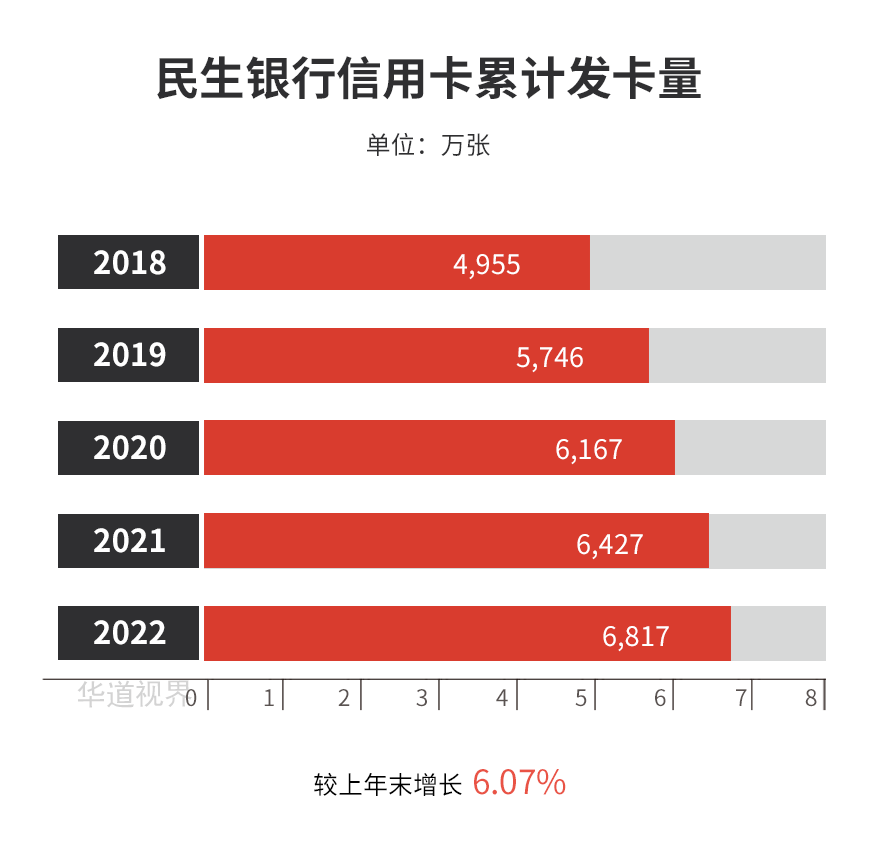 截至报告期末,民生银行信用卡累计发卡6,817.31 万张,比上年末增长6.07% ;新增发卡390.43万张,同比增长50.32% ;