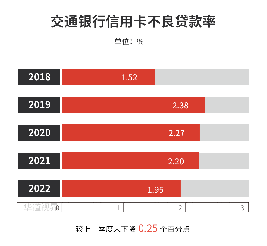 截至报告期末,交通银行信用卡不良率为1.95%,较上年末下降0.25个百分点;