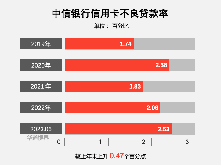截至2023年末,中信银行信用卡不良率2.53%,较上年末上升0.47个百分点;不良贷款余额131.98亿元,较上年末增加26.78亿元;