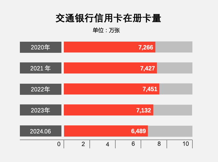 截至2024年6月末,交通银行境内注册卡量6,488.83 万张;