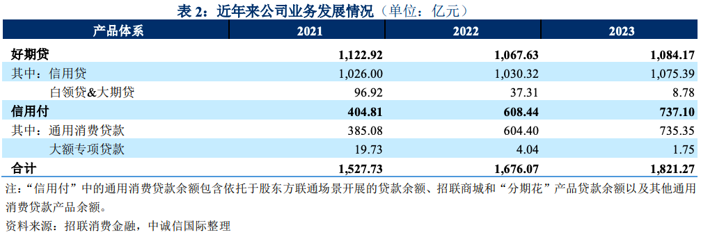 近年来,招联消费金融调整优化业务结构,在提升自主营销能力的同时, 加大与第三方平台合作,信贷资产稳步增长。加大与互联网平台消费分期的合作,推动业务规模稳步增长。“好期贷”和“信用付”两大产品 体系满足不同消费场景及客户群体的消费贷款需求。