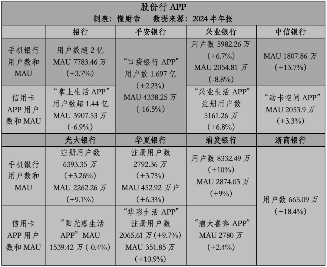 另外,股份行中,仅有兴业银行的手机银行APP遭遇负增长,MAU下滑了8.8%,缩减至2054.81万。