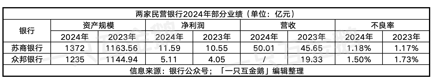 一年新增资产90亿、200亿,众邦银行、苏商银行2024业绩可以