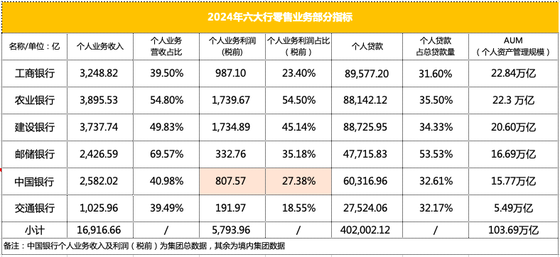 六大行个人资产管理规模合计 103.69 万亿,较上年增加 9.67 万亿;