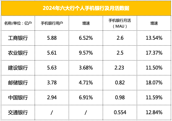手机银行活跃度成为新的竞争焦点,农业银行手机银行用户增幅突出为9.57%,邮储银行月活增幅表现亮眼为 18.07% ,各家均展现出强大的数字化运营能力。