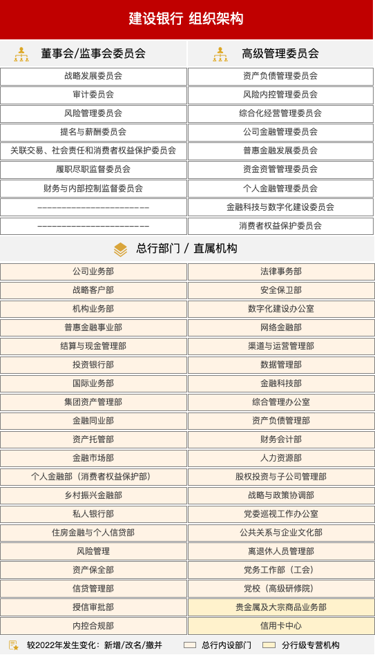 与2022年披露的信息相比,中国银行组织架构调整如下: