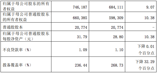 截至 2022年末,兴业银行资产总额 92,717.61 亿元,较上年末增长7.77%,其中本外币各项贷款余额 49,828.83 亿元,较上年末增长 12.53%;负债总额 85,144.63 亿元,较上年末增长 7.66%,其中本外币各项存款余额 47,369.82 亿元,较上年末增长 9.88%。资产质量保持稳定,不良贷款率 1.09%,较上年末下降 0.01 个百分点;拨备覆盖率 236.44%,较上年末下降 32.29 个百分点。