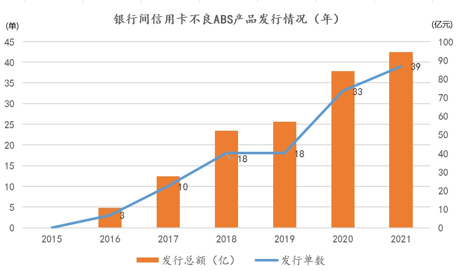 2021年,共13家国有银行和股份制银行发行总计39笔信用卡不良资产证券化ABS产品,发行规模为94.22亿元,涉及信用卡不良资产约1,133亿元,较2020年发行笔数及规模呈增长趋势。从发起机构来看,新增了邮储、广发、平安三家银行,且三家银行均为首次发行信用卡类不良ABS产品(广发银行曾在银登中心发过信用卡不良收益权转让公告,在银行间市场发行信用类不良ABS则为首次);从发行规模来看,较2020年发行的84亿元同比增长12%,相应的不良资产原始债权规模增长3.3%。整体来看,近几年来各银行利用资产证券化方式进行信用卡不良资产处置的模式已经非常成熟,预计随着个贷不良贷款批量转让试点工作的推进,这两种模式将会充分发挥拓宽金融业不良资产处置渠道,加强不良资产处置力度的作用。未来可重点关注不同发起机构、不同逾期账龄条件下,信用卡不良ABS产品在存续期的基础资产回款表现,为不良资产投资决策积累参考依据。