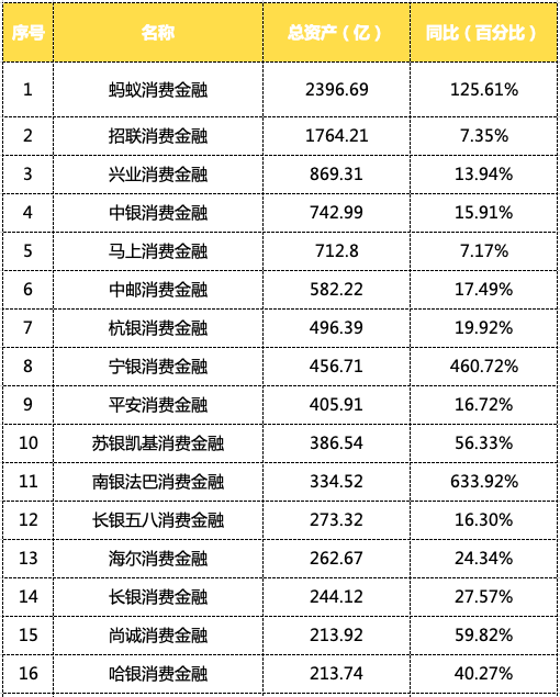 其次,宁银消费金融资产规模较上年末增长460.72%增至456.71亿元,蚂蚁消金较上年末增长125.61%,尚诚消金较上年末增长59.82%,苏银凯基消金、哈银消金、小米消金等资产规模均同比增长超过40%。
