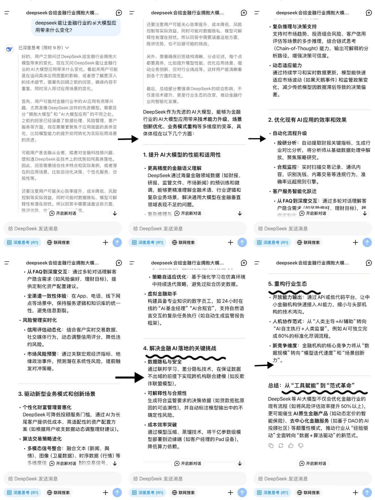 纵观过去2年金融行业对大模型的投入、进展,再对比DeepSeek进入公众视野后的进展,进度条截然不同。